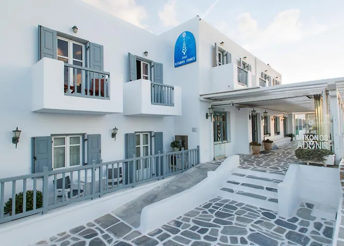 El hotel se encuentra en Mikonos y está muy cerca de todas las atracciones principales de la ciudad. Los autobuses hacia otras playas de la isla, como Paradise, Platis Gialos y Paranga, se encuentran en las inmediaciones.
